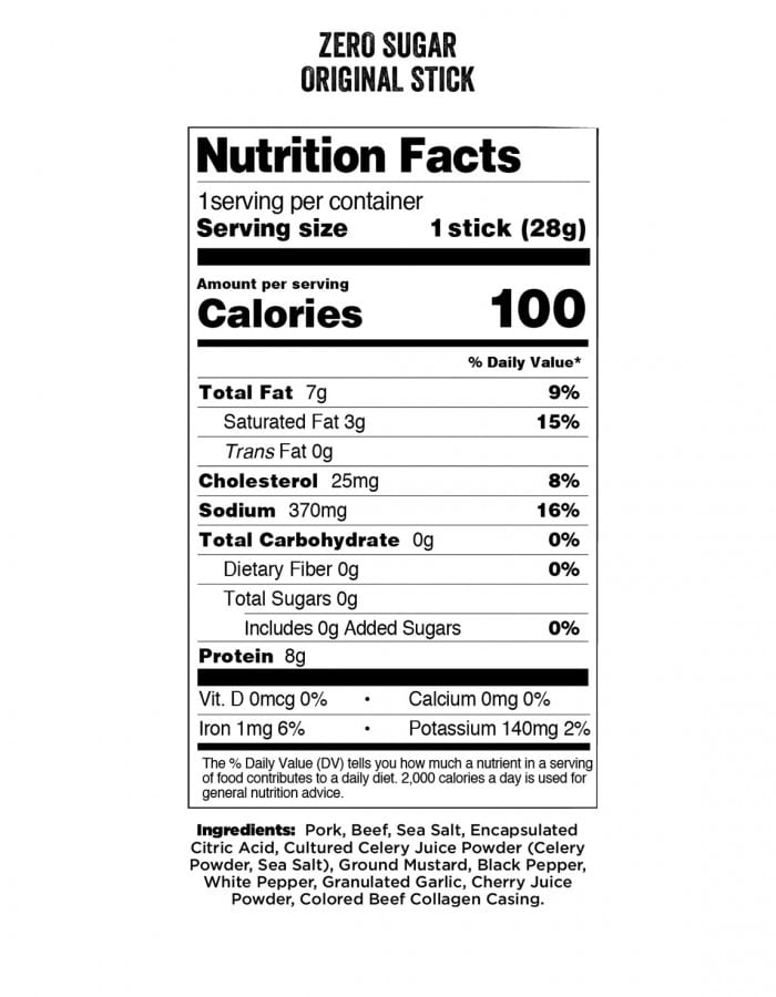 Beef and Pork Meat Stick with 100 Calories and 8 grams of Protein. Sold Individually.