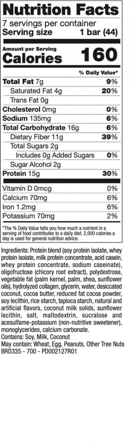 This bar combines the delicious flavors of chocolate and coconut for a satisfying, protein packed snack.