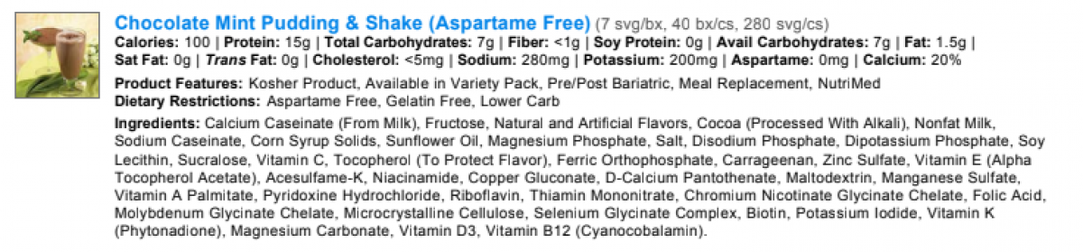 100 Calories, 15 gm Protein, 1.5 gm Fat, 7 gm Carbohydrate