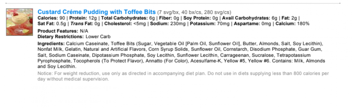 90 Calories, 12 gm Protein, 2 gm Fat, 6 gm Carbohydrate