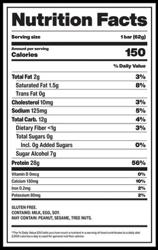 Warm cinnamon dough with vanilla cream frosting. 28g Protein, 150 Calories, 0g Sugar