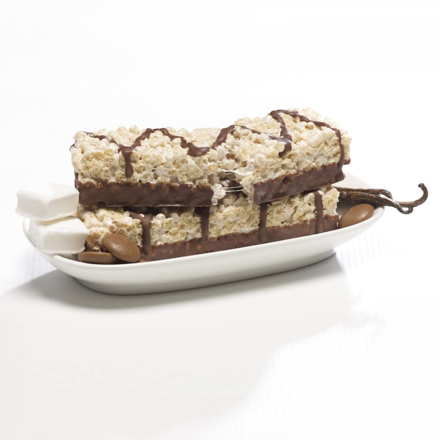 Enjoy these Fluffy Vanilla Chocolate Protein Bars! They taste like a vanilla rice krispy treat with a chocolate drizzle!