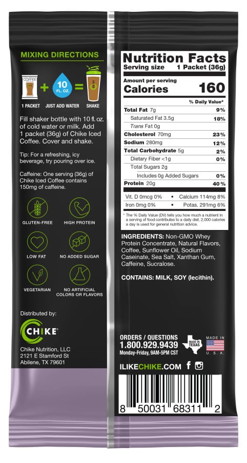 Chike Sweet Cream Iced Coffee is a delicious way to enjoy your coffee and your protein! With 2 Espresso Shots, 20 grams of Whey Protein, 23 Vitamins & Minerals & only 2 grams of Sugar – it’s the perfect drink to kickstart your day or fight the midday slump! The excuses for skipping breakfast are officially over!