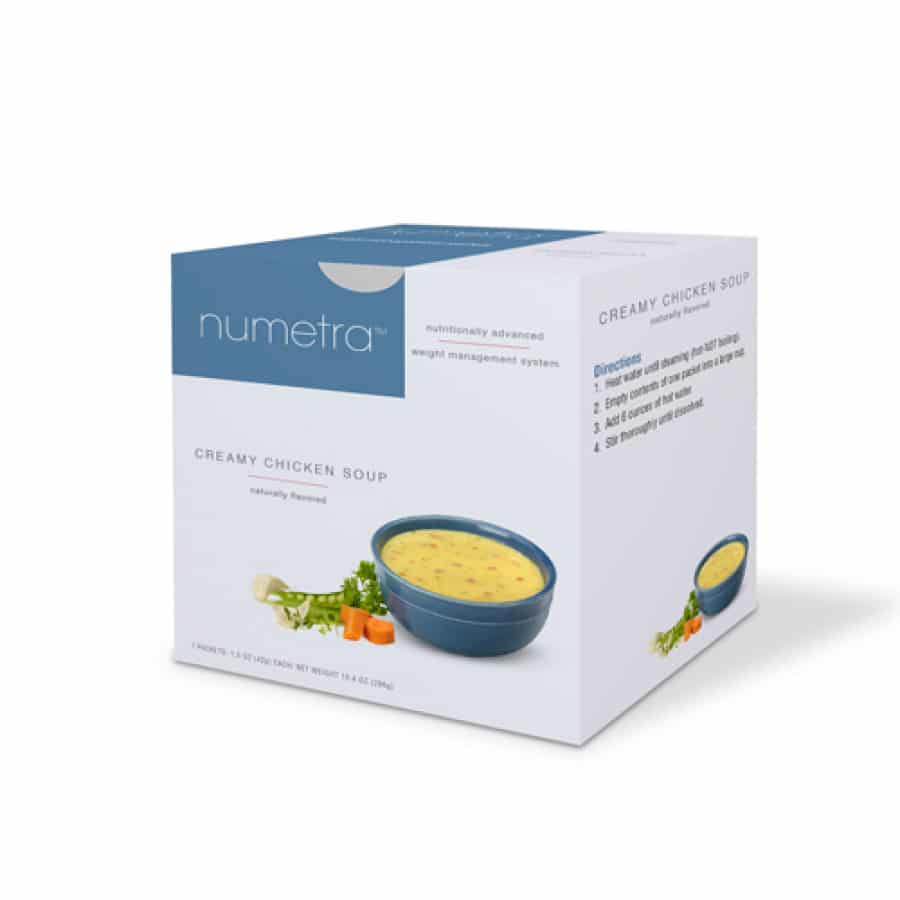 Enjoy our hot meal replacement Numetra Soup Mix at any phase of your weight loss journey. Provides complete nutrition with 20 g of protein, 160 Calories, 5 grams Fat and 11 grams Carbohydrates. 7 Servings per box.